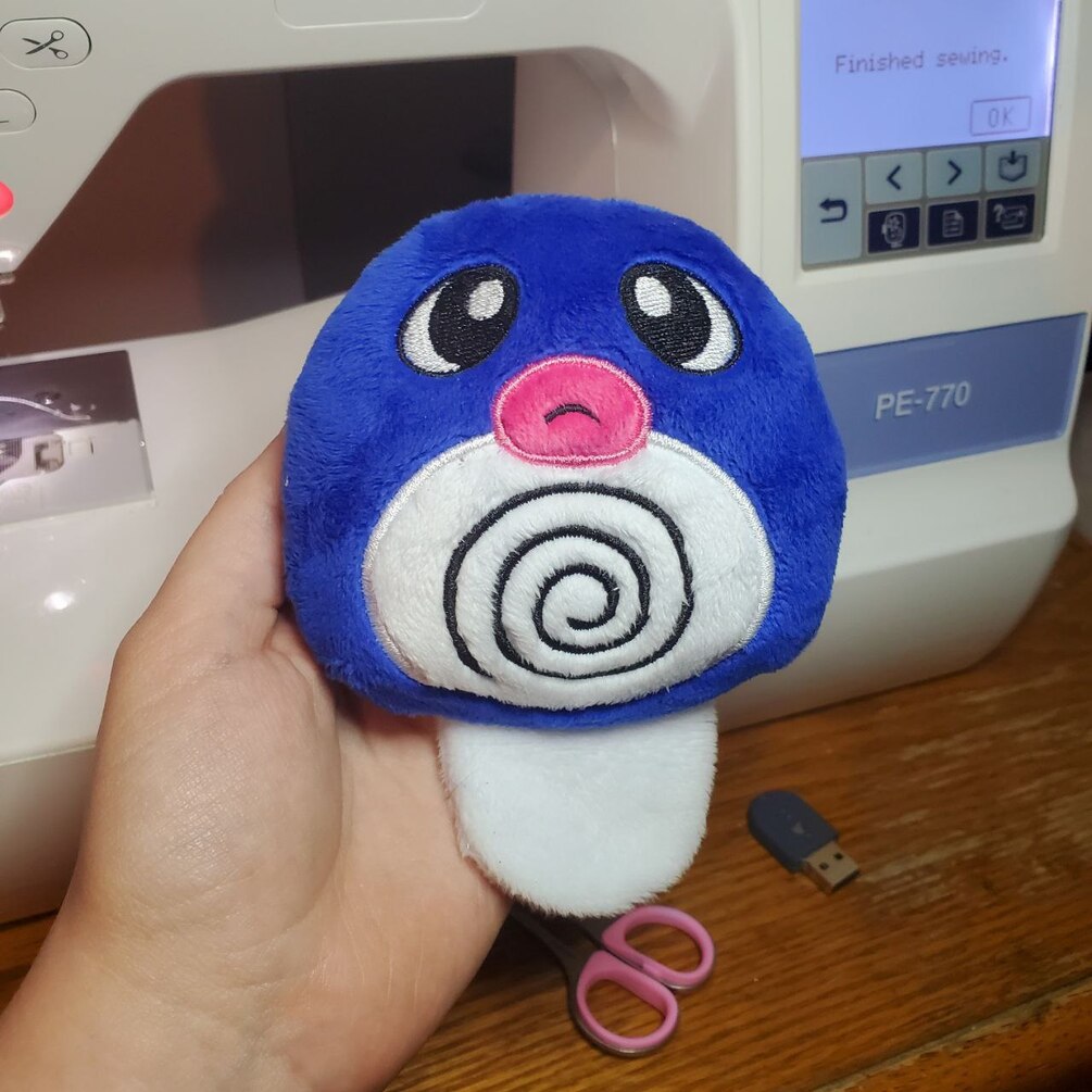 Included Files: ITH Poliwag Embroidery Files, ITH Poliwag Tutorial, Plush Making Resource Guide
